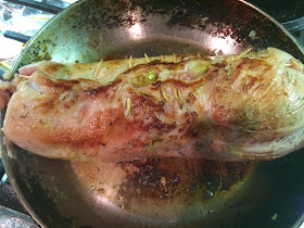 Pork loin roast in the process of searing! The outside it slightly darkened. I didn't have enough